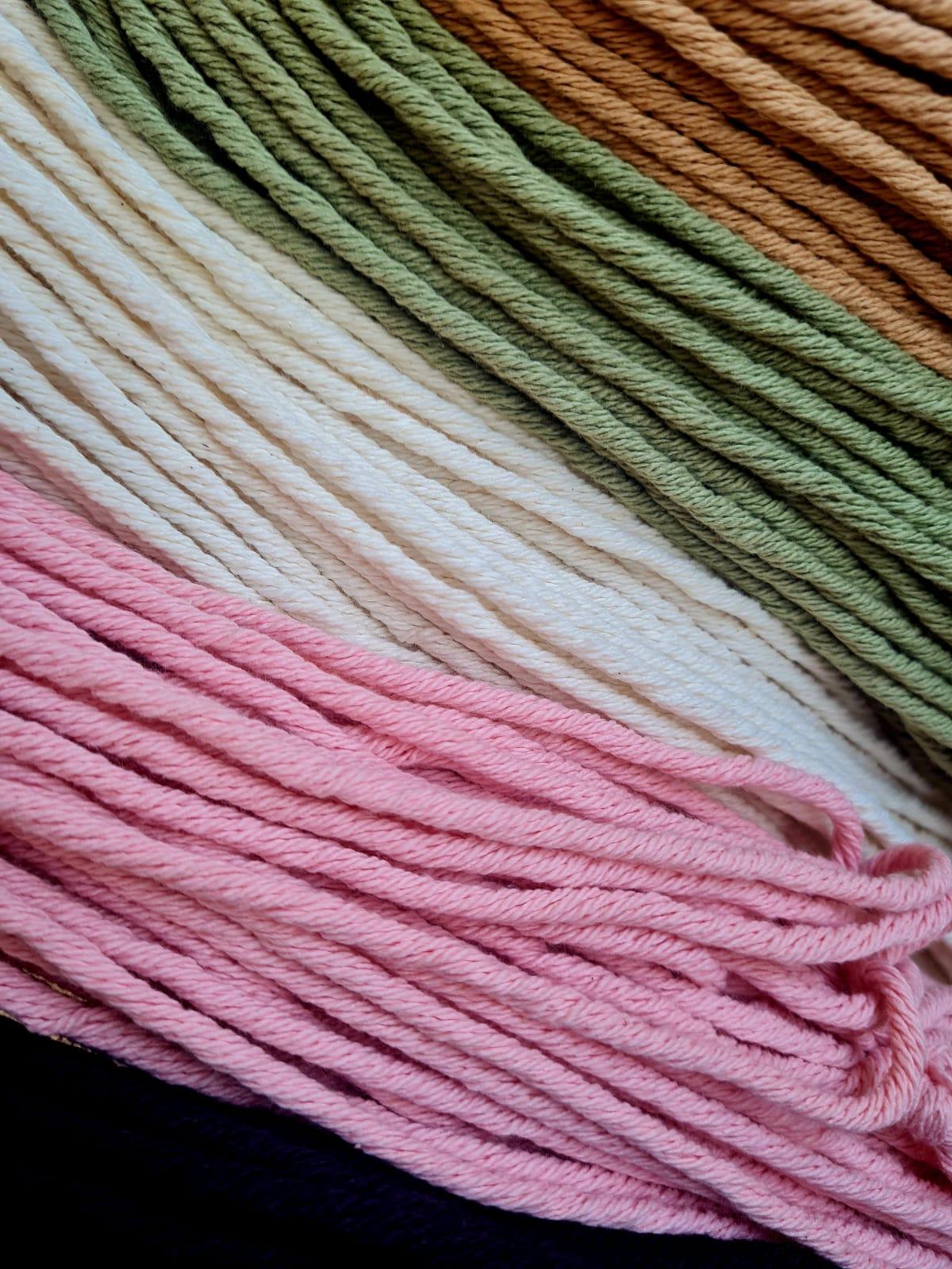 Descripción: Hilado de algodón grueso de 3 mm de espesor. Ideal para realizar proyectos deco -hogar, técnica macramé, mantas y pie de cama.