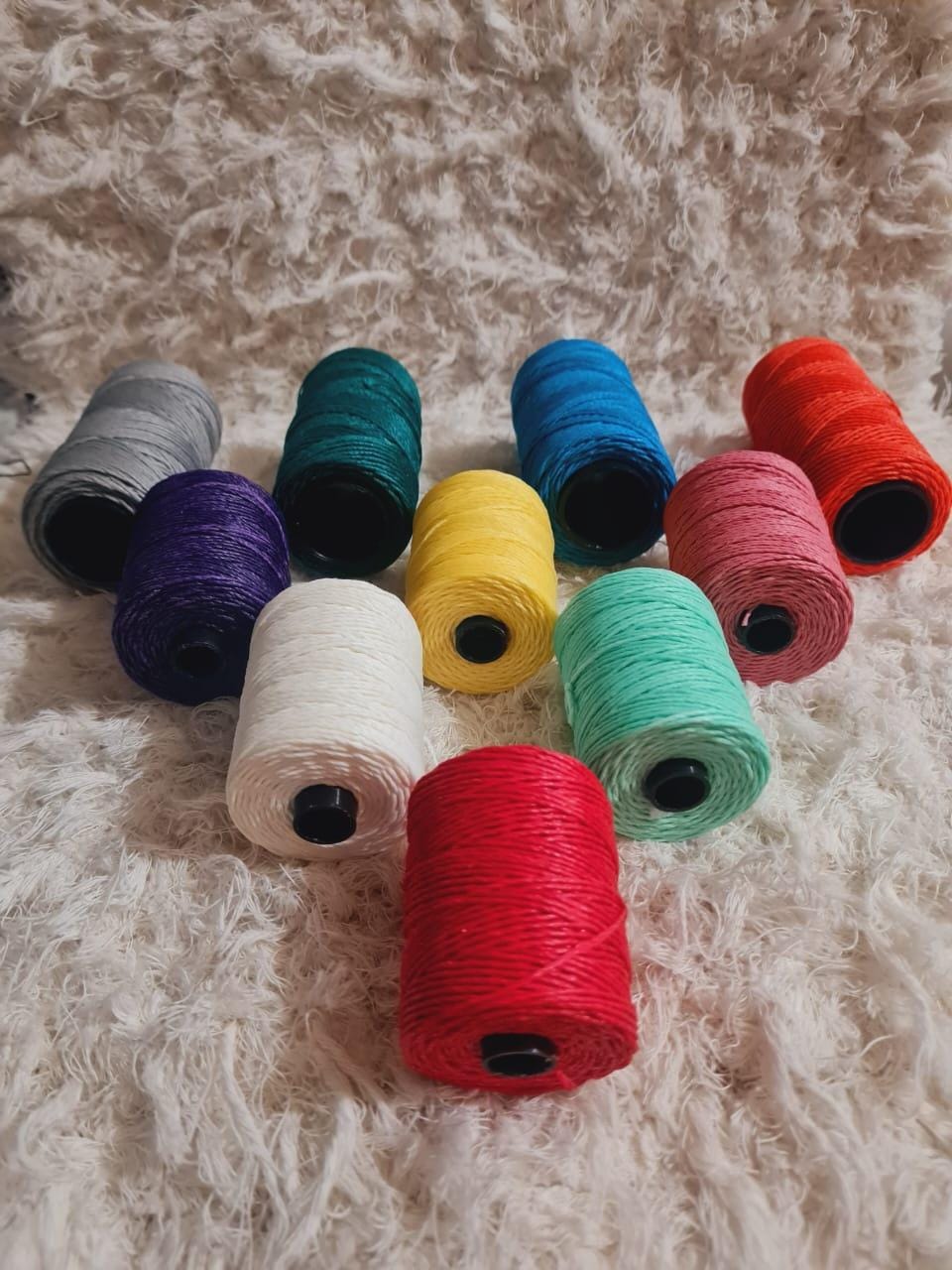 Descripción: hilo encerado de 1mm por 70 metros, compuesto por 3 hebras retorcidas con revestimiento de cera de alta calidad, dando una sensación suave y pegajosa. es resistente, se puede quemar o anudar para que no se deshilache las puntas. Ideal para pulseras, collares, tobilleras, macramé, tejidos, envolver regalos, colgar tarjetas, costuras (excepto calzado), jardinería, decoraciones, artesanías y mucho más.