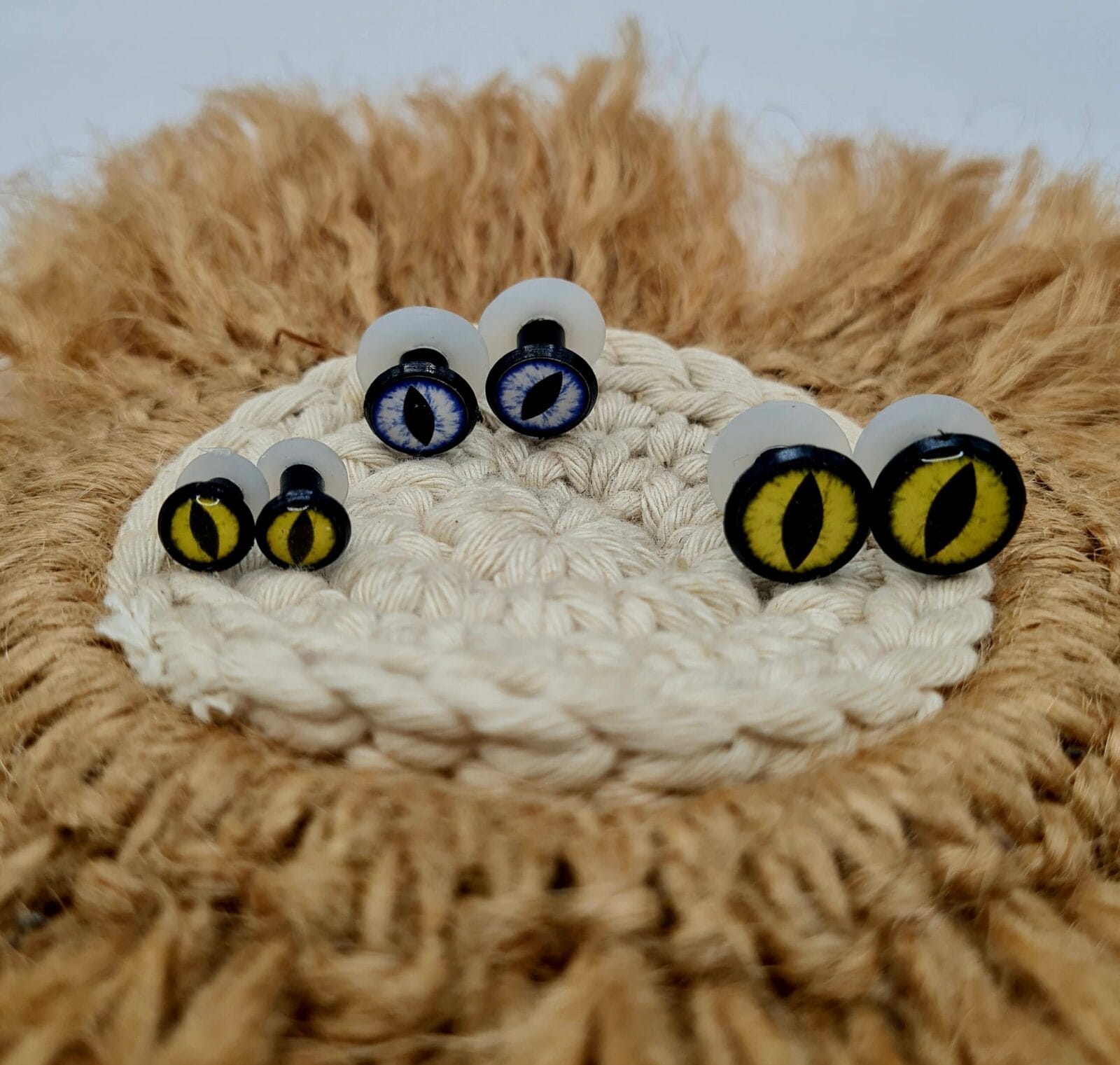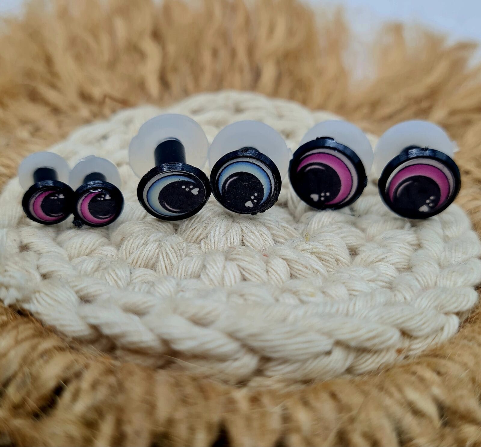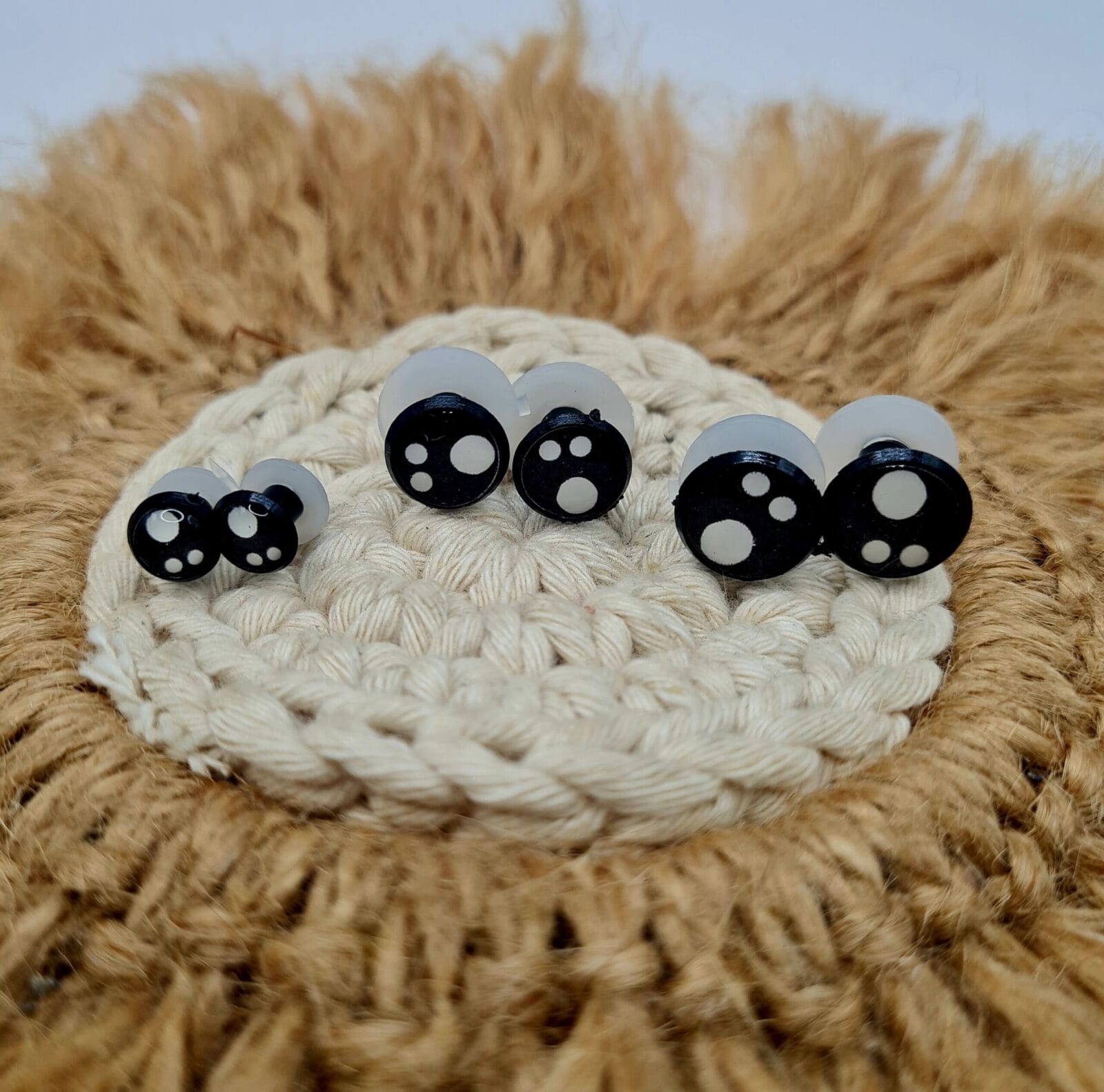 Descripción: Ojos variados para tus diseños. Cada uno con su traba de seguridad. Números disponibles en 8mm/12mm/14mm